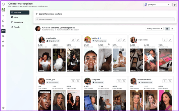You can now search for similar creators based on a specific creator’s name or IG handle